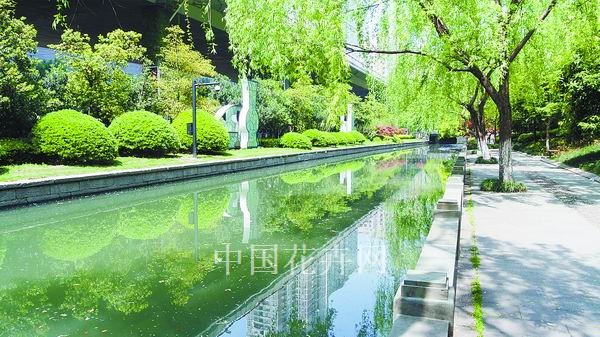 通過種種改造,中河面貌煥然一新,成為展示杭州生活品質的又一個窗口。河岸兩側是花草樹木與古橋、雕塑融合而成雅致清新的景致,緩緩“前行”的碧波中倒影清澈如畫,一幅別具特色的中河美景圖在眼前徐徐展開。