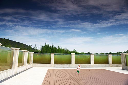 天師廣場:和天師嶺、創(chuàng)教路、鶴鳴臺(tái)等景點(diǎn)一起,集中展示張道陵天師歷經(jīng)得道、修煉、斗法、立教、升天,羽化成仙的過程,再現(xiàn)張?zhí)鞄煹男薜乐?。廣場呈半圓形,設(shè)有特色鋪裝、臺(tái)階花壇、觀景錯(cuò)層平臺(tái)等硬性設(shè)施,觀景平臺(tái)與水上世界自然融為一體,伴著徐徐微風(fēng),云龍湖的美景盡收眼底。