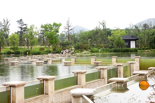 施工技術(shù)的創(chuàng)新以沉水廊道為代表。沉水廊道總長148米,是中國目前最長的廊道景觀,工程量大,施工條件復(fù)雜,面對(duì)的技術(shù)難題多。施工的最大難點(diǎn)是廊道防滲排水、基礎(chǔ)沉降及廊體抗浮處理等技術(shù)環(huán)節(jié)。通過技術(shù)團(tuán)隊(duì)的多次攻關(guān),最終解決了廊道不沉降、廊道結(jié)構(gòu)穩(wěn)定、結(jié)構(gòu)防水等問題,形成了獨(dú)具特色的長廊技術(shù)施工特色。