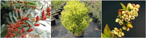 ▲從左至右:小葉蚊母、易豐女貞、藍(lán)莓