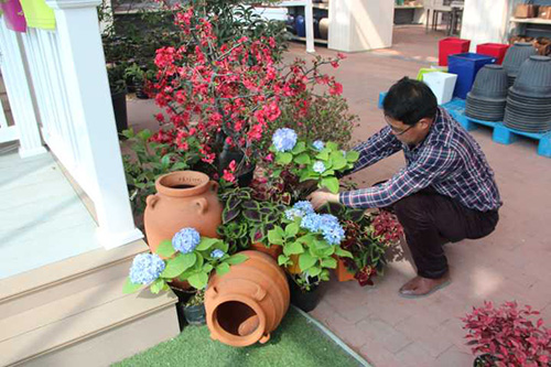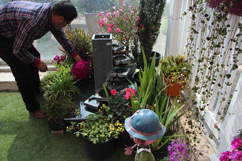 在園藝中心選購(gòu)打造一米花園所需的園林小品、植物材料及其他輔材。