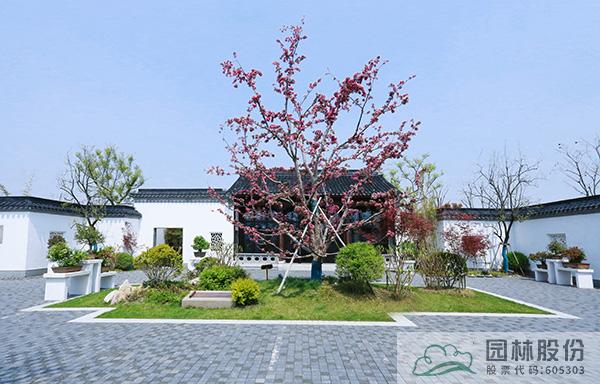 盆景園內(nèi),一棵棵造型別致的盆景,是海棠另一種形態(tài)的展現(xiàn)。院子中央,高大的‘豐盛海棠’正迎來盛花期,深粉色的花朵密密匝匝布滿枝頭,成為院中最引人矚目的風(fēng)景,與院子里的五棵柿子樹搭配種植,組合成“五世同堂”的美好寓意,寓示著日子紅紅火火、闔家歡樂吉祥。在主建筑旁的天井處,采用盆景化的造園手法,運(yùn)用南天竹、黑松、石子等元素營(yíng)造的植物小景,自成一方小天地,與整個(gè)盆景園形成“園中園”的關(guān)系,展現(xiàn)出造園者的奇妙心思。