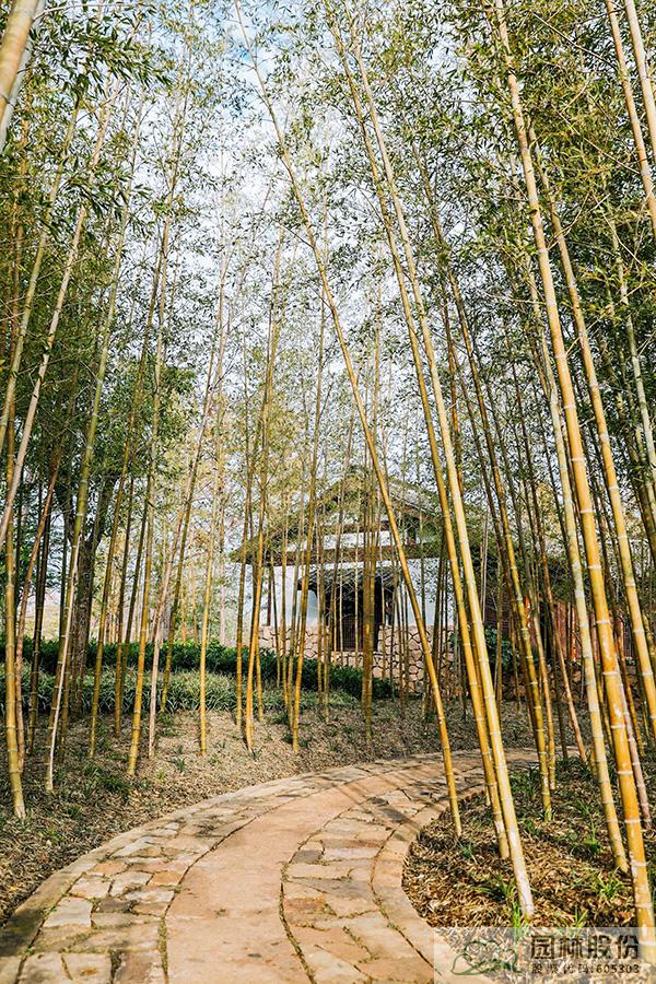 竹是新時代杭州重要的文化載體之一。因此入口左側選擇西湖環(huán)境中“茂林修竹”之元素,以毛竹種植為主,形成夾景,曲徑通幽。