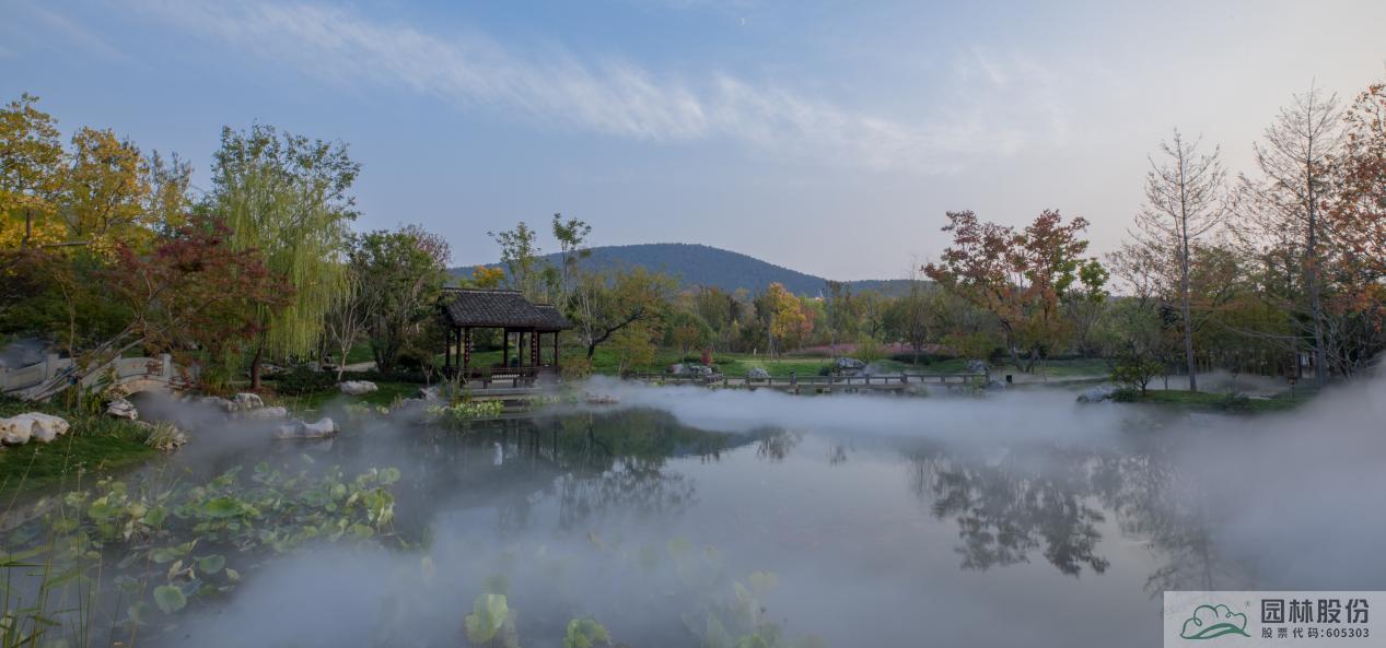 杭州園總體以西湖“景中村”為設計藍本,以“家在錢塘”為主題,通過浙派園林的造園手法,營造“竹隱”“云舍”“湖居”“問茶”“尋香”五大展區,描繪出一幅“小橋流水人家”與茶園竹林、南宋風情相交融的美麗畫卷,塑造“人與天調,然后天地之美生”的生態園林,展現宜居宜業宜游的詩畫西湖和杭州韻味。項目施工內容主要包括鋪裝工程、綠化工程、園林水系、仿古建筑等。