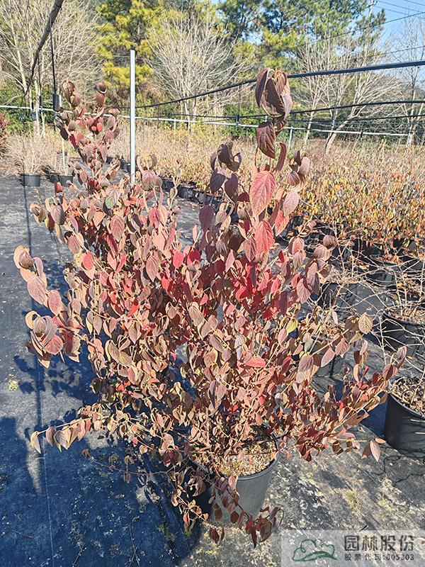 忍冬科莢蒾屬,落葉灌木,全株被毛。花白色,量大,花期4月。果紅色,量通常較小,果期10-12月。秋季葉色變暗紅,通常11月開始變色,12月至次年2月達到最佳觀賞效果。病蟲害較少,生長速度快,且耐寒,通常雪期還未落葉。植株極耐修剪,適合工程應用或庭院觀賞。