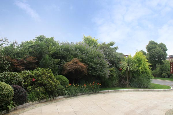 別墅小區(qū)公共景觀的植物配置不但要與建筑、環(huán)境相協(xié)調(diào),還要做到多層次、多樣化、多季相,并創(chuàng)造出植被生態(tài)景觀及其圍合空間的豐富多彩,達(dá)到人與環(huán)境的和諧統(tǒng)一,因此,植物的選擇與配置顯得尤為重要。據(jù)徐建良介紹,工程中的植物選擇與配置遵循三個(gè)原則:第一,根據(jù)地域特征,考慮季相變化;第二,根據(jù)建筑空間的大小、遠(yuǎn)近,近景或端景配置觀賞性強(qiáng)的品種,遠(yuǎn)景的植物配置則充分考慮空間天際線及建筑物之間的關(guān)系;第三,充分考慮林下植物和孤賞植物布置的各個(gè)方面,突出自然生長(zhǎng)特征和人工修整造型植物之間的反差對(duì)比。以此為指導(dǎo),上層空間選擇了香樟、合歡、玉蘭、樸樹、銀杏等大規(guī)格喬木,中下層空間種植紅葉石楠、枸骨、杜鵑、鋪地柏、火棘等花灌木和地被,再配以微地形的處理,整個(gè)植物造景的林冠線、林緣線及空間層次別具特色,從而使得別墅區(qū)的整體景觀層次分明、色彩豐富,既在統(tǒng)一中富于變化,每個(gè)區(qū)域又自成風(fēng)格。特別是每個(gè)路口的花境營(yíng)造,更為小區(qū)增添一抹亮色。
